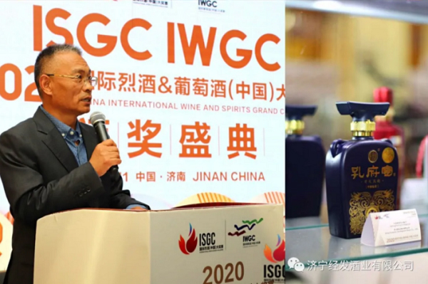 济宁经发投资集团领导同国际烈酒大赛组委会主席朱济义(右四),首席执行官韩文友(右五)合影留念。